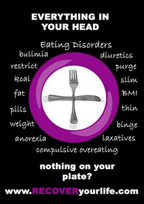 (Photo courtesy of Clinically Clueless) I became very interested on this topic of Eating Disorders while looking at research during my group's Barbie Complex project a couple months back. I never knew that this was a serious mental issue, so I never took it serious. To me it seemed like a cry for attention or to get pitty from others. So I am sad to admit that I too (along with a lot of other people out there) believe in a lot of Myths relating to Eating Disorders. In my project I will dive into more of the common Myths around it. I think that there is not enough of variety of people suffering from this disease. The only ones that we see depicted on TV talking about it are all the same types of people, so in a way it seems almost like a "publicity stunt" rather than a real world disease. Since not a lot of people who watch it can relate to it, since they don't see themselves represented as having it. Hopefully everybody would see that it is real disorder (as more cases come out), the way that I did after my research.